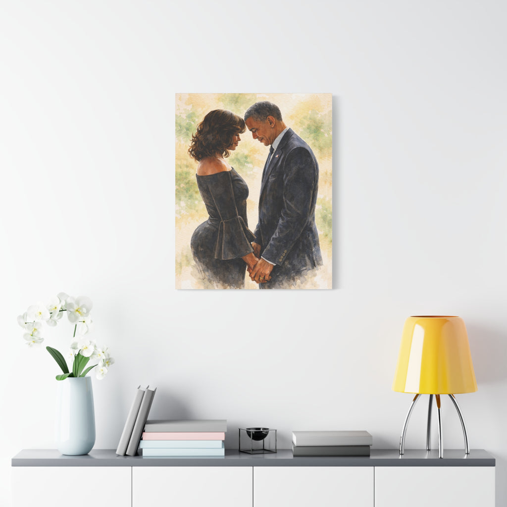 The Obamas by Jesse Raudales Matte Canvas, Stretched, 1.25"